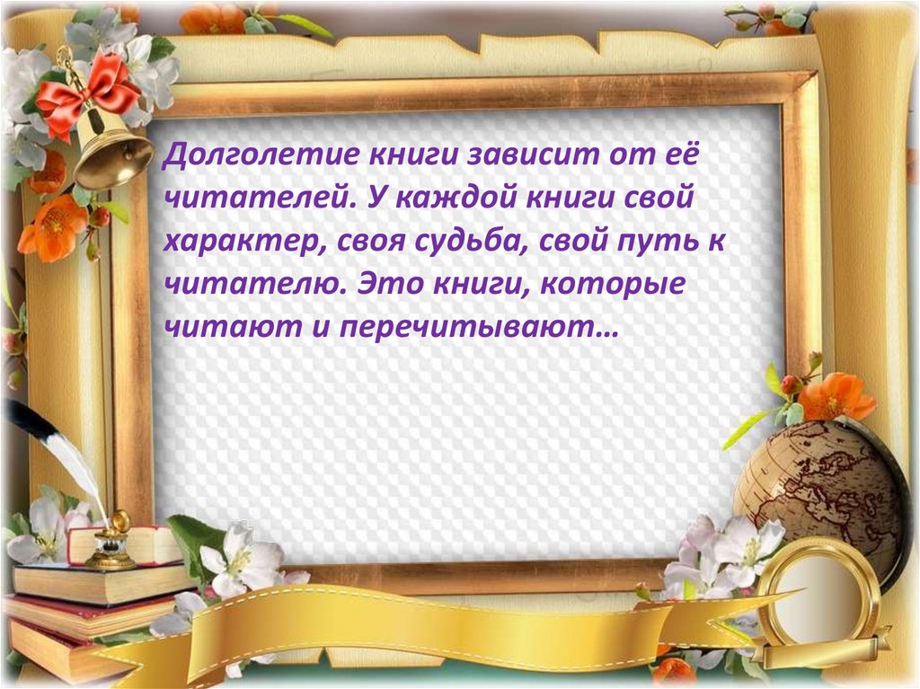 Долголетие книги зависит от еёчитателей. У каждой книги свой