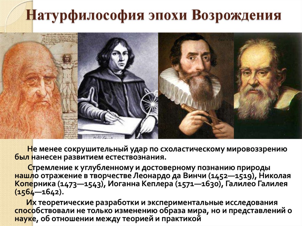 Натурфилософия эпохи ВозрожденияНе менее сокрушительный удар по схоластическому мировоззрению