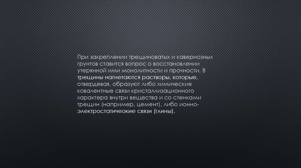 При закреплении трещиноватых и кавернозныхгрунтов ставится вопрос о восстановлении