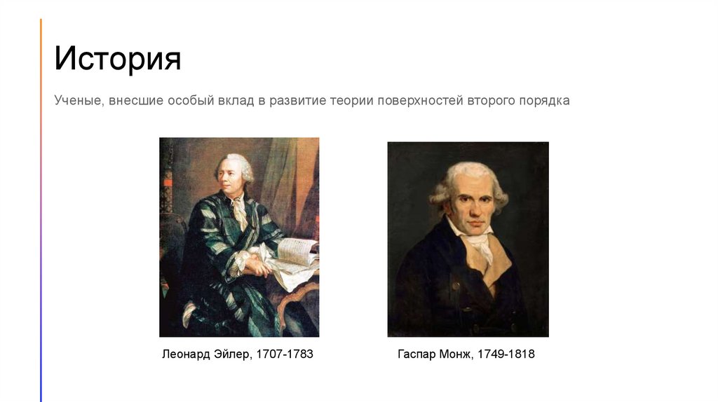 ИсторияУченые, внесшие особый вклад в развитие теории поверхностей второго порядка