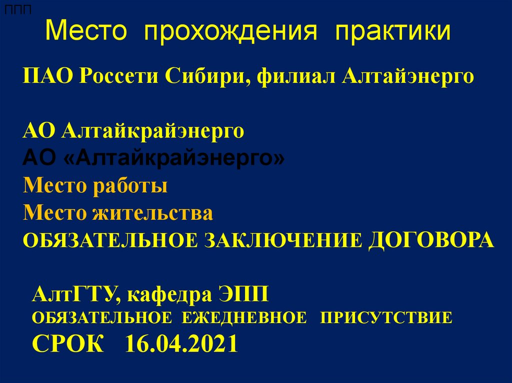 ПППМесто прохождения практики