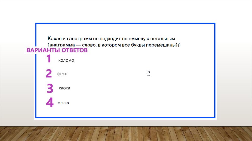 ЗАДАНИЕ 4АНАГРАММЫ. СРЕДИ ПРЕДЛОЖЕННЫХ ВАРИАНТОВ НАЙДИТЕ