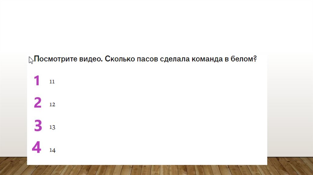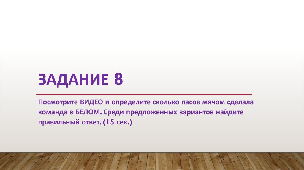 ЗАДАНИЕ 8Посмотрите ВИДЕО и определите сколько пасов мячом сделала