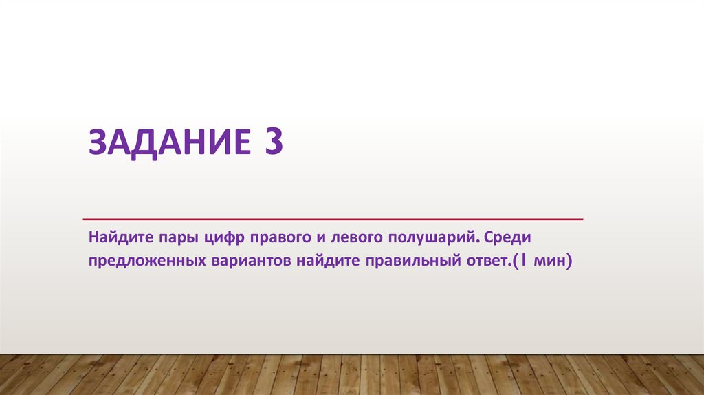 ЗАДАНИЕ 3Найдите пары цифр правого и левого полушарий. Среди