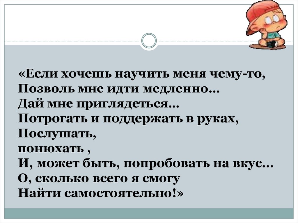 «Если хочешь научить меня чему-то,Позволь мне идти медленно…