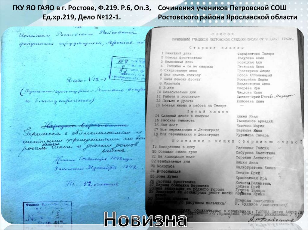 Официальные документы и сочинения детей, учившихся во время Великой Отечественной войны в Ростовском районе
