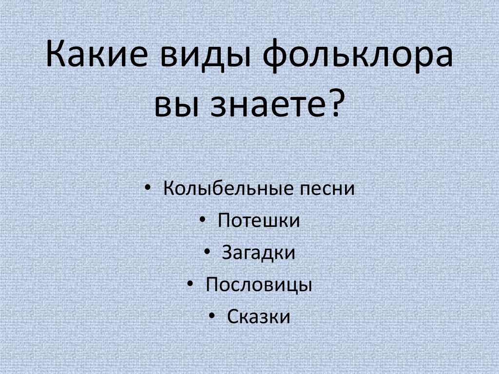 Какие виды фольклоравы знаете?