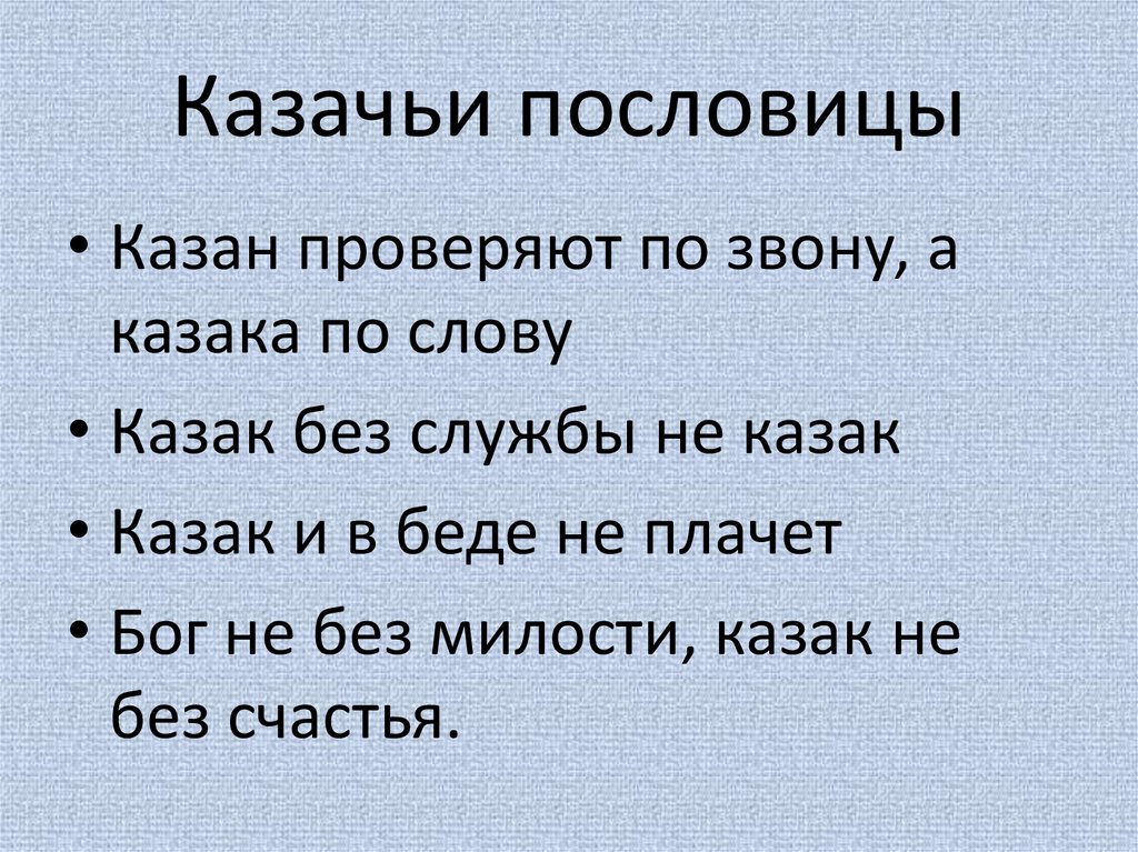 Казачьи пословицы• Казан проверяют по звону, а