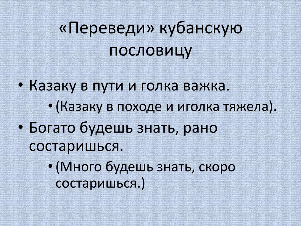 «Переведи» кубанскуюпословицу