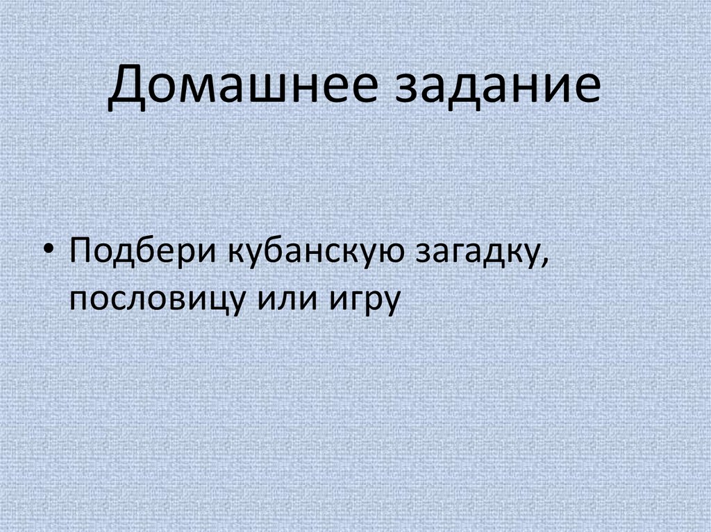 Домашнее задание• Подбери кубанскую загадку,
