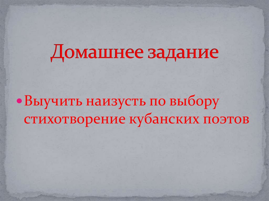 Выучить наизусть по выборустихотворение кубанских поэтов