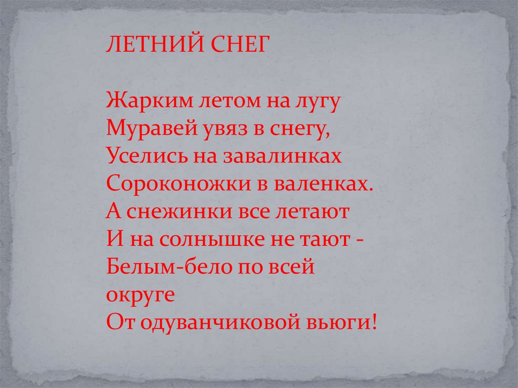 ЛЕТНИЙ СНЕГЖарким летом на лугу