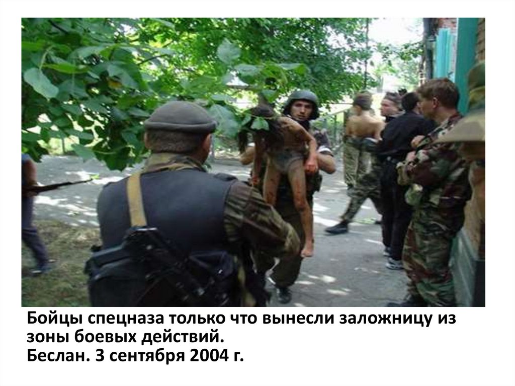 Бойцы спецназа только что вынесли заложницу иззоны боевых действий.