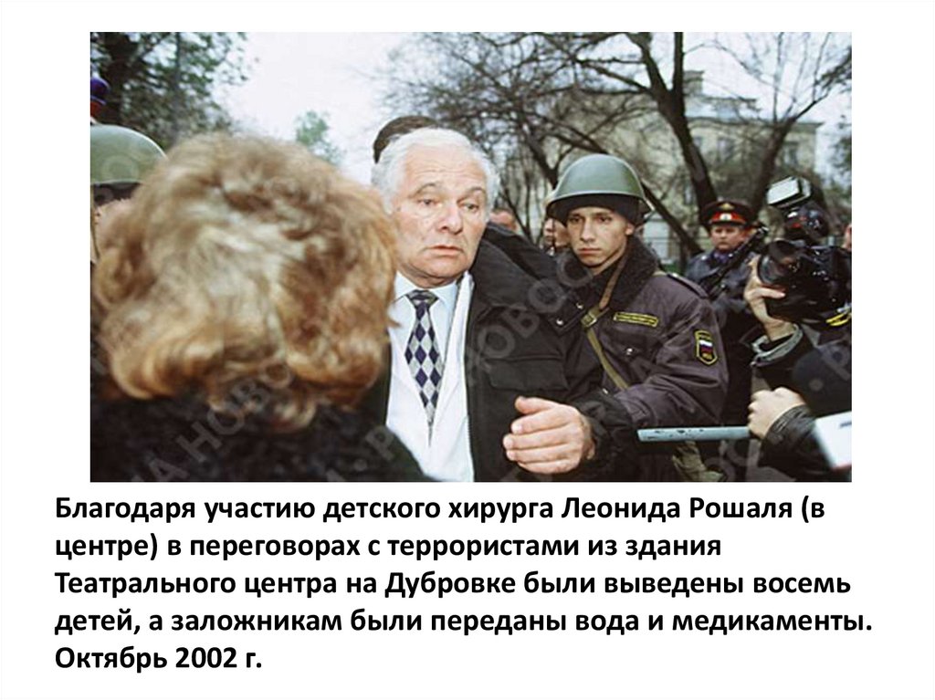 Благодаря участию детского хирурга Леонида Рошаля (вцентре) в переговорах с террористами из здания