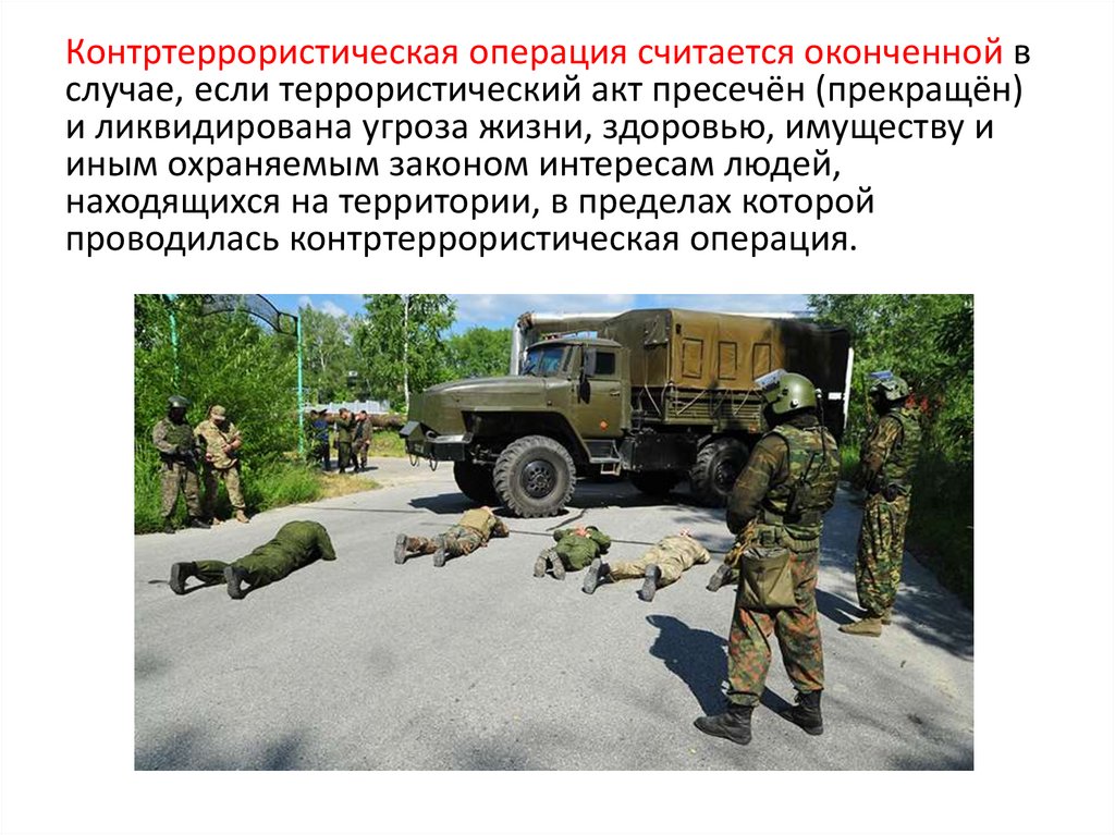 Контртеррористическая операция считается оконченной вслучае, если террористический акт пресечён (прекращён)