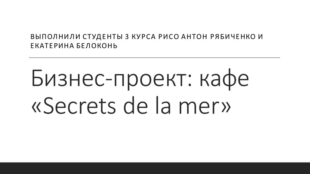 Кафе «Secrets de la mer». Бизнес-проект