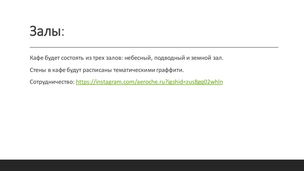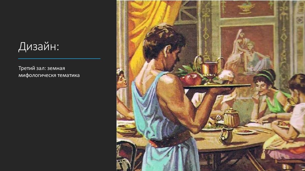 Залы:Кафе будет состоять из трех залов: небесный, подводный и земной зал.