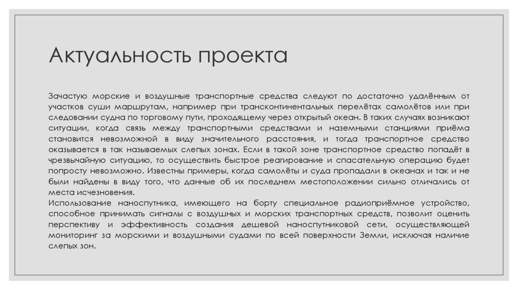 Актуальность проектаЗачастую морские и воздушные транспортные средства следуют по достаточно удалённым от