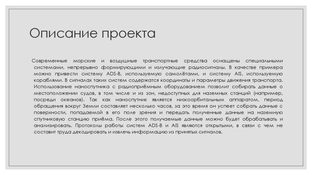 Описание проектаСовременные морские и воздушные транспортные средства оснащены специальными