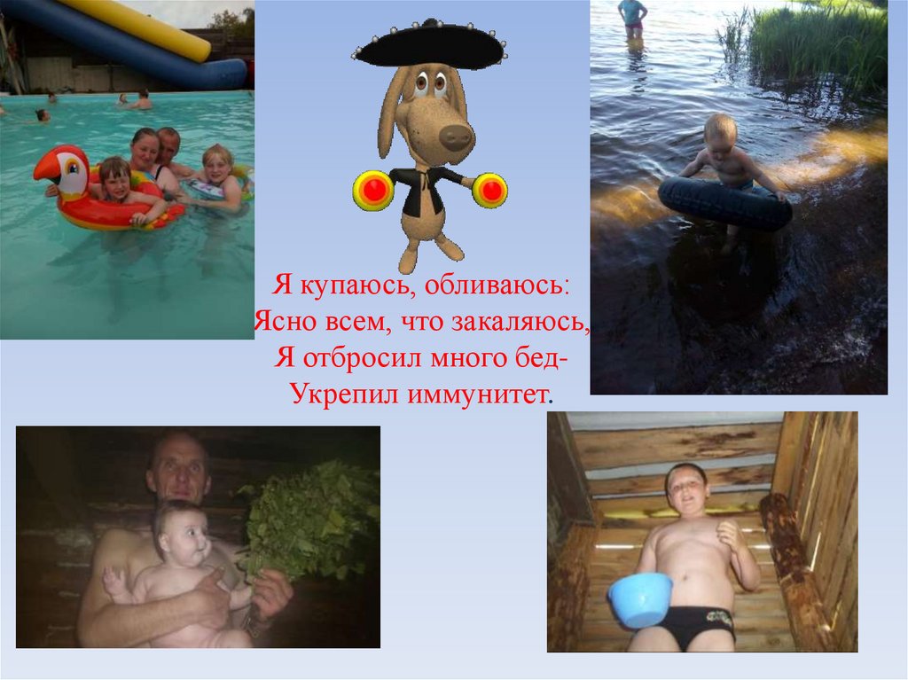 Я купаюсь, обливаюсь:Ясно всем, что закаляюсь,