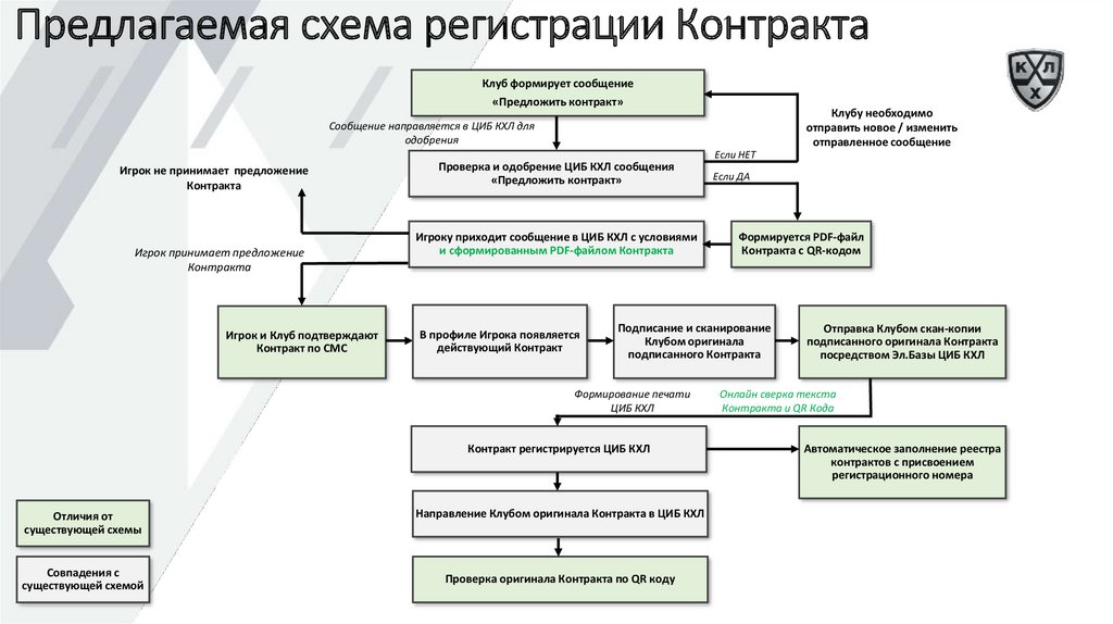 Схемы регистрации контракта (новая и текущая) в ЦИБ КХЛ