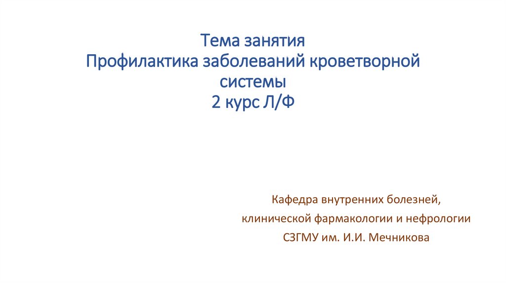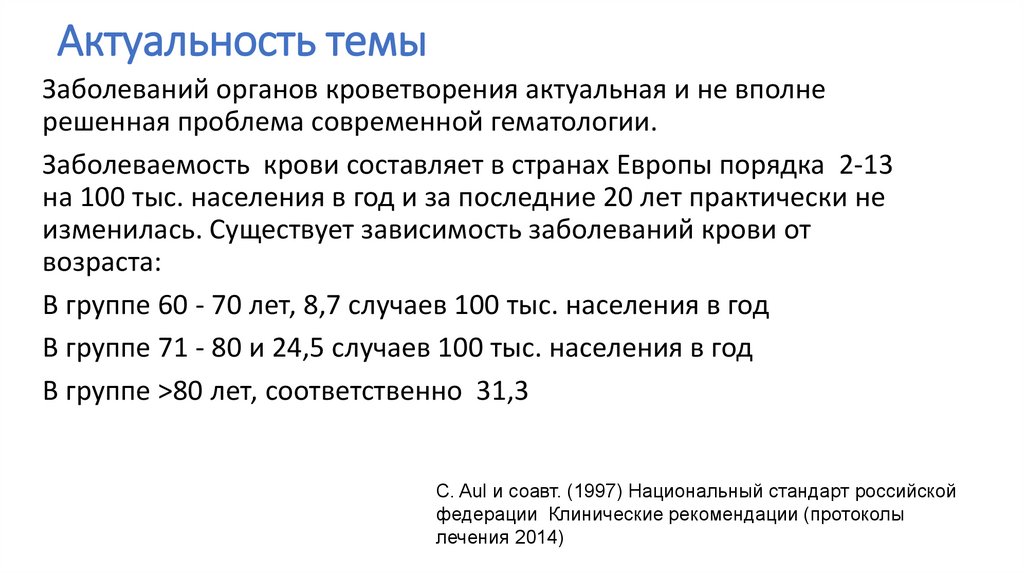 Актуальность темыЗаболеваний органов кроветворения актуальная и не вполне