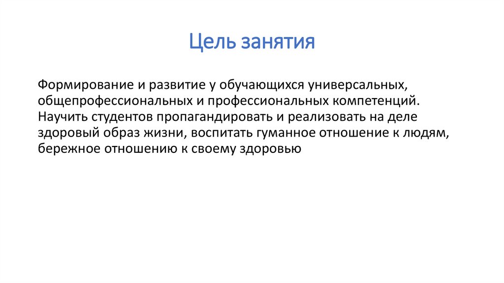 Цель занятияФормирование и развитие у обучающихся универсальных,