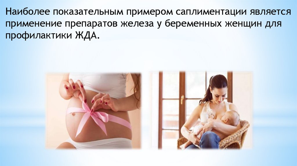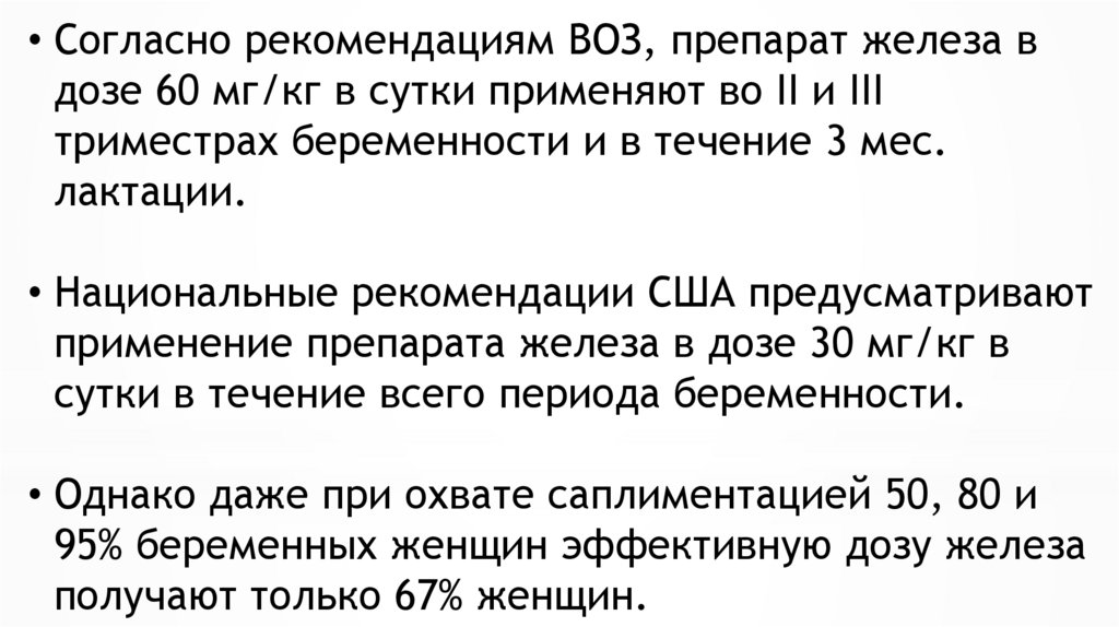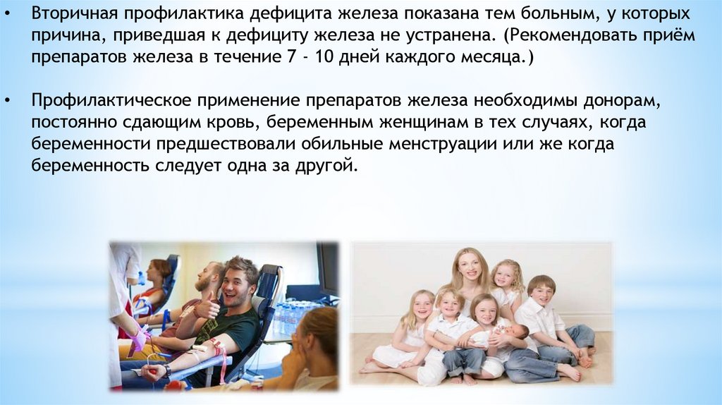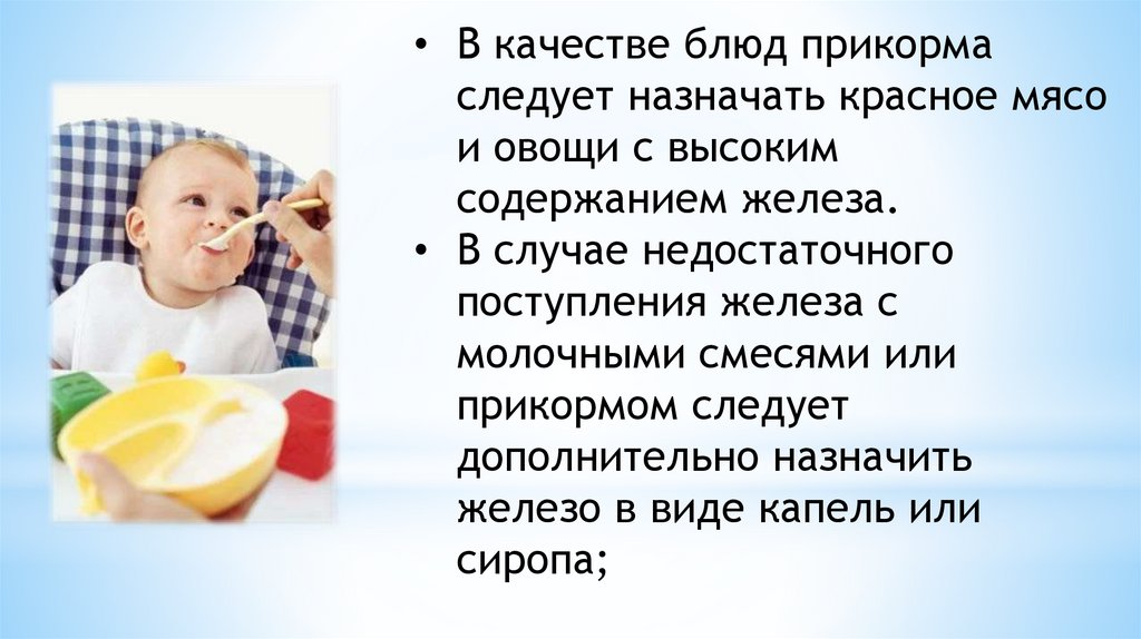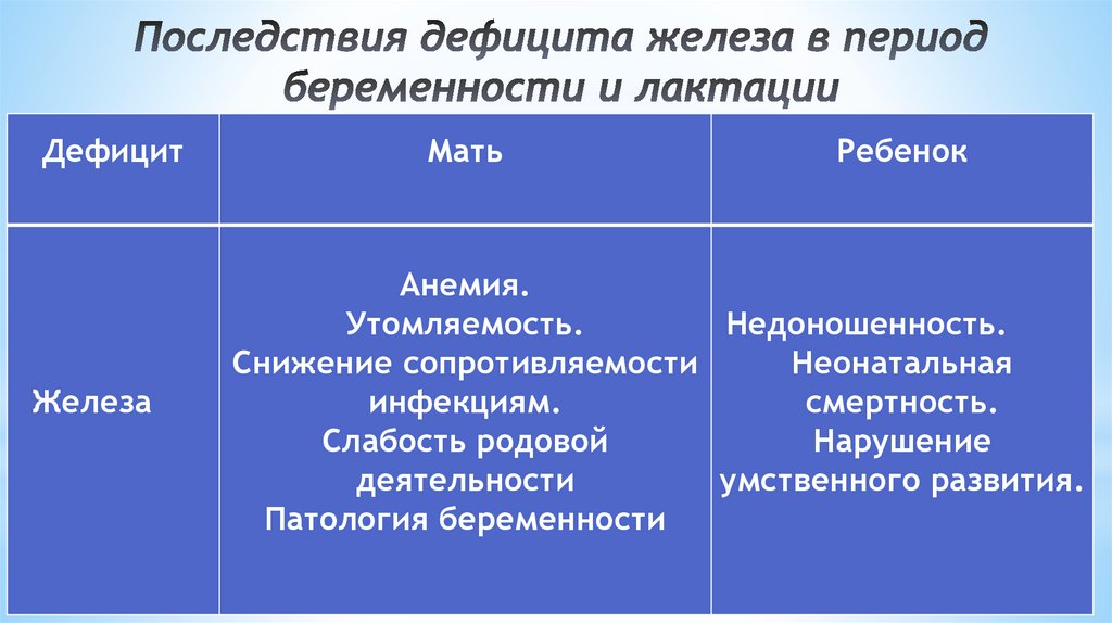 принимать внутрь препарат железа до родов и весь период кормления ребенка грудью