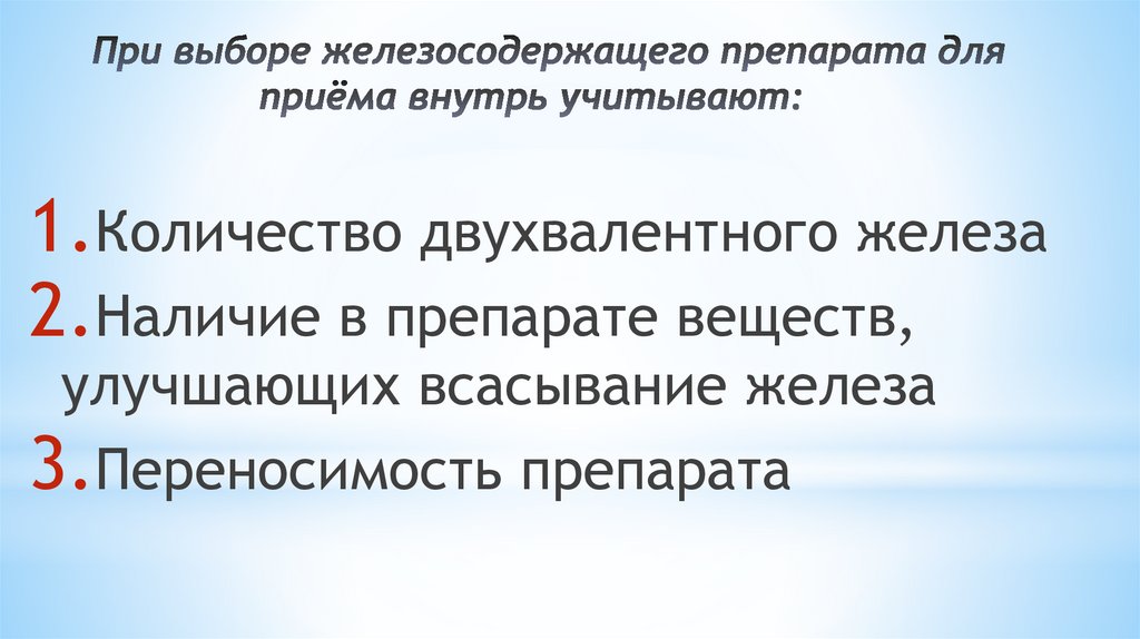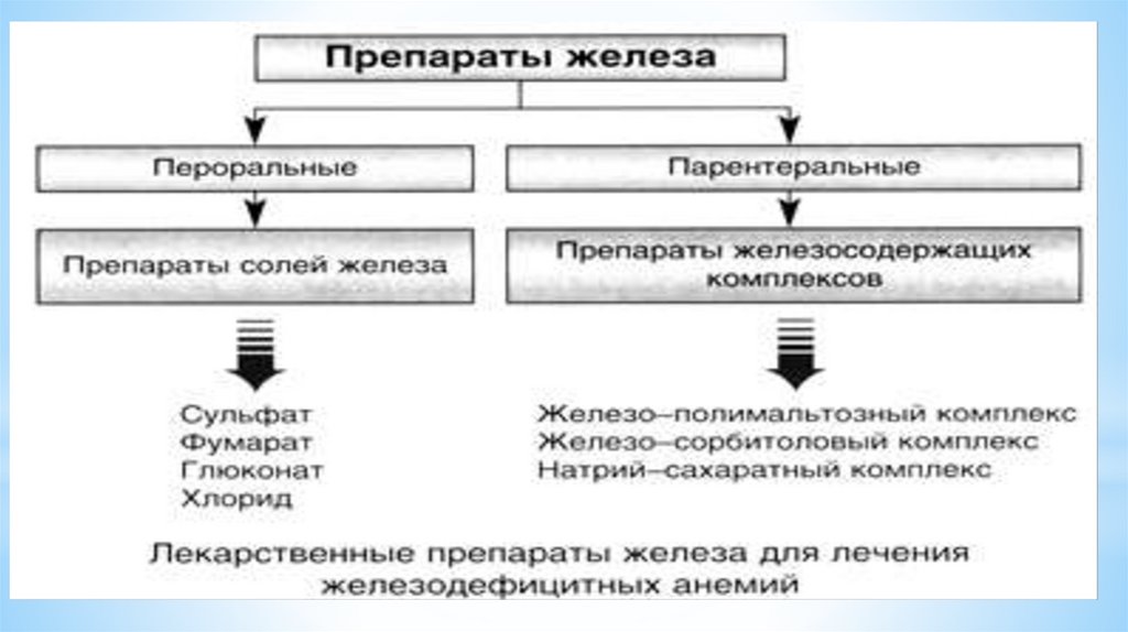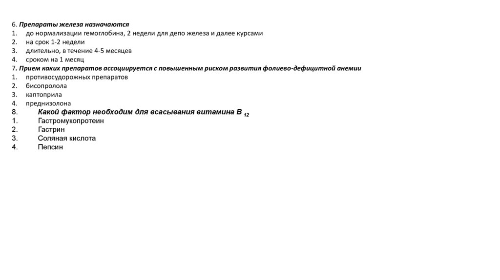 6. Препараты железа назначаются1. до нормализации гемоглобина, 2 недели для депо железа и далее курсами