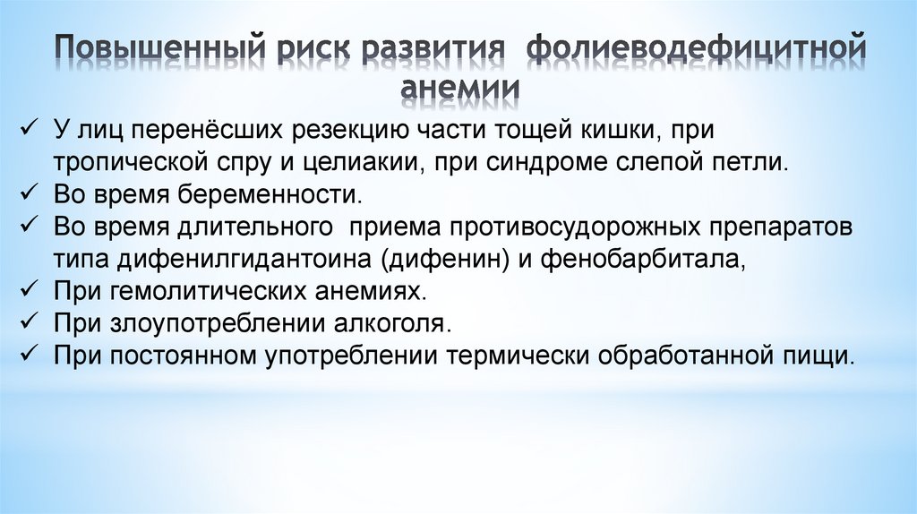 7. Прием каких препаратов ассоциируется с повышенным риском развития фолиево-дефицитной анемии