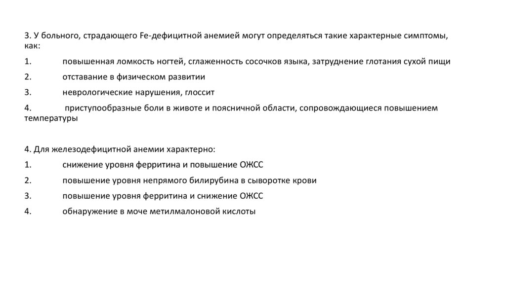 3. У больного, страдающего Fe-дефицитной анемией могут определяться такие характерные симптомы,как: