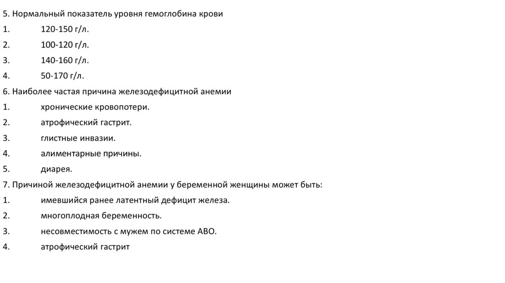 7. Причиной железодефицитной анемии у беременной женщины может быть: