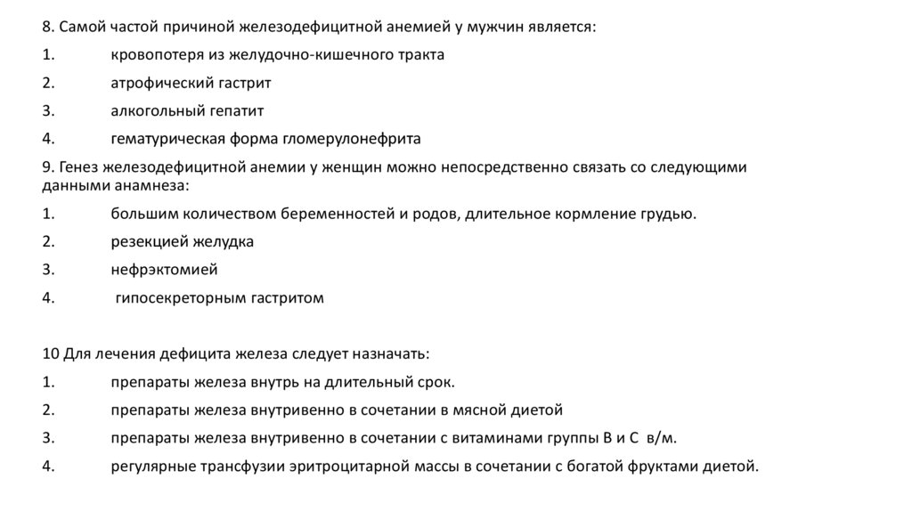 8. Самой частой причиной железодефицитной анемией у мужчин является:1.