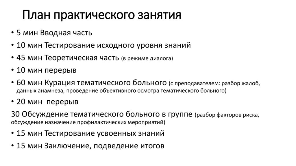 • 60 мин Курация тематического больного (с преподавателем: разбор жалоб,