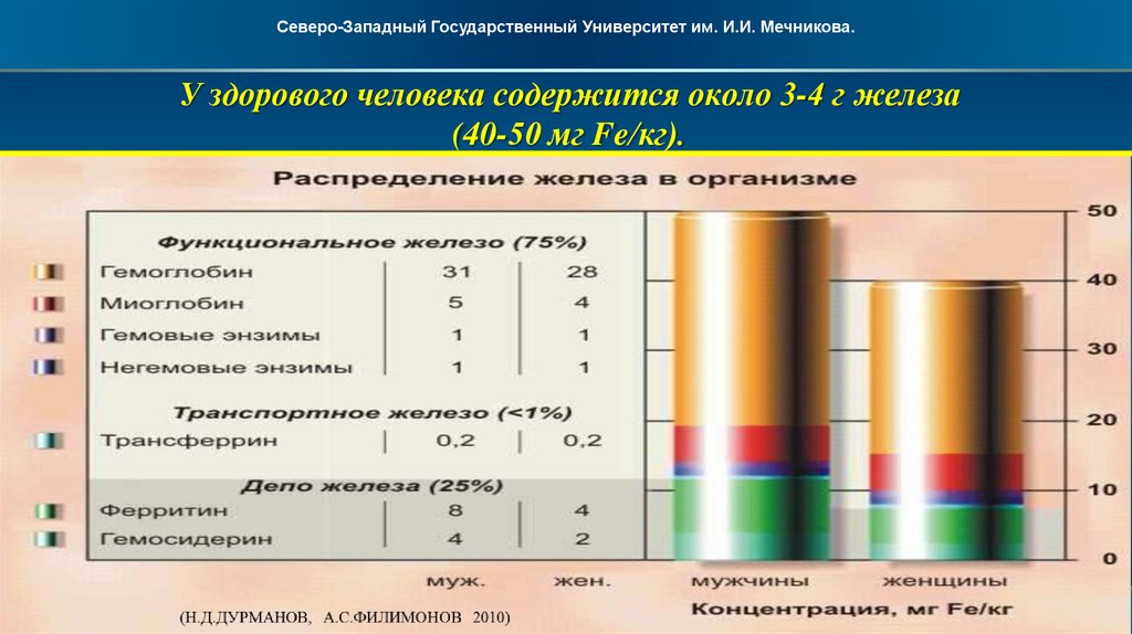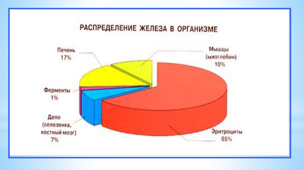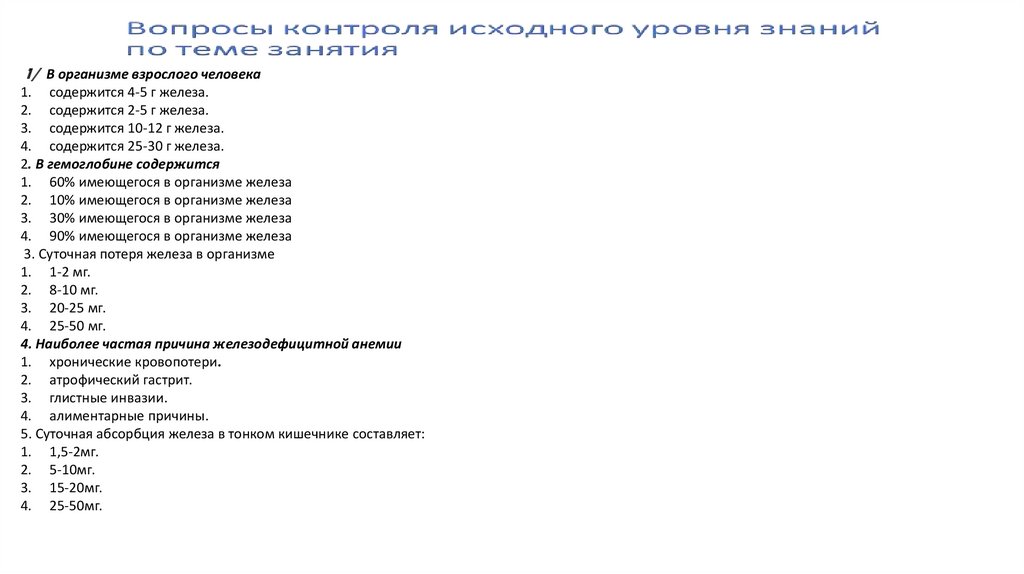 1/ В организме взрослого человека1. содержится 4-5 г железа.