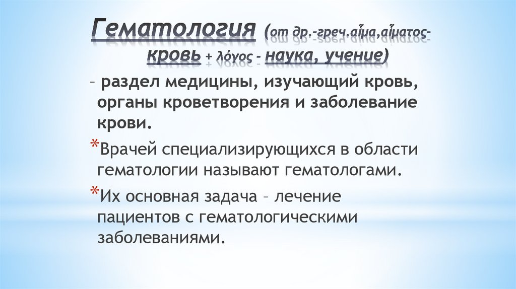 – раздел медицины, изучающий кровь,органы кроветворения и заболевание