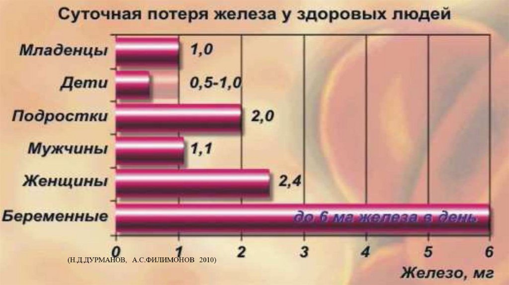 5. Суточная абсорбция железа в тонком кишечнике составляет: