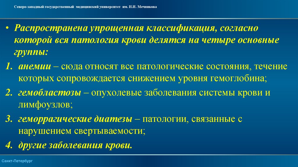 Северо-западный государственный медицинский университет им. И.И. Мечникова• Распространена упрощенная классификация, согласно