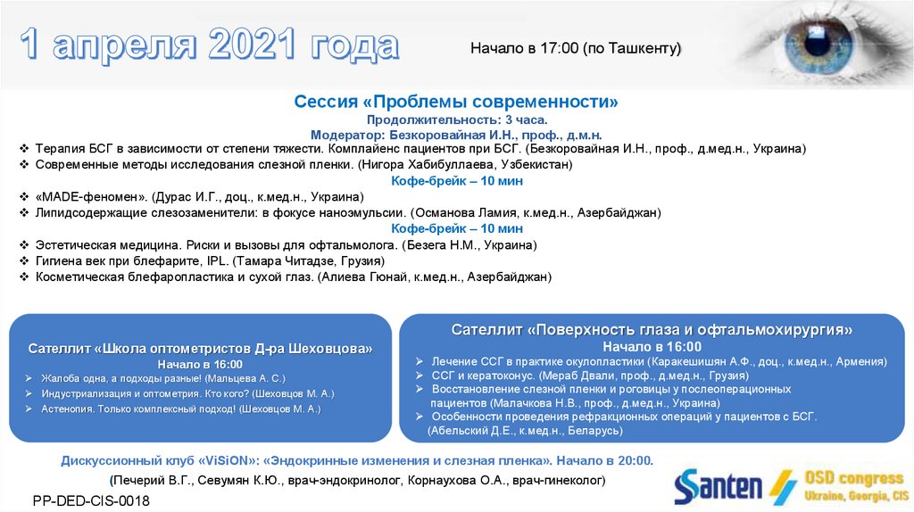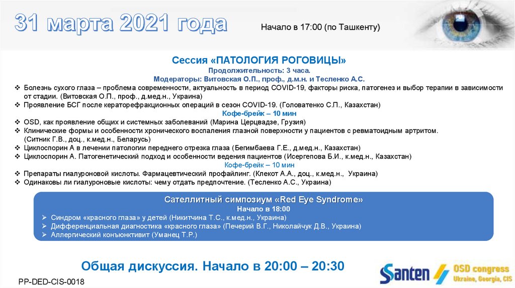 Начало в 17:00 (по Ташкенту)Сессия «ПАТОЛОГИЯ РОГОВИЦЫ»