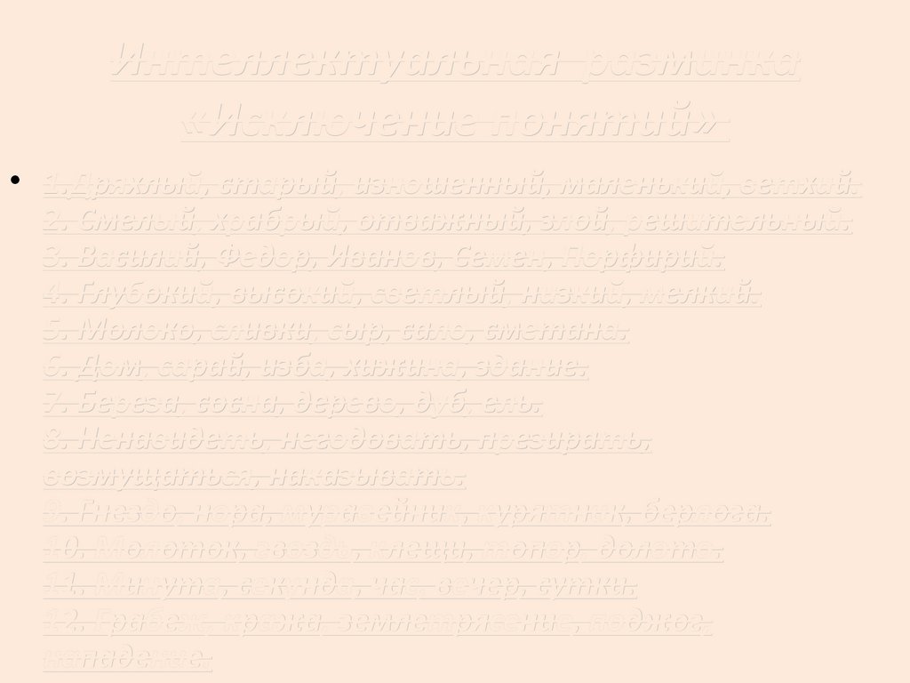 • 1.Дряхлый, старый, изношенный, маленький, ветхий.