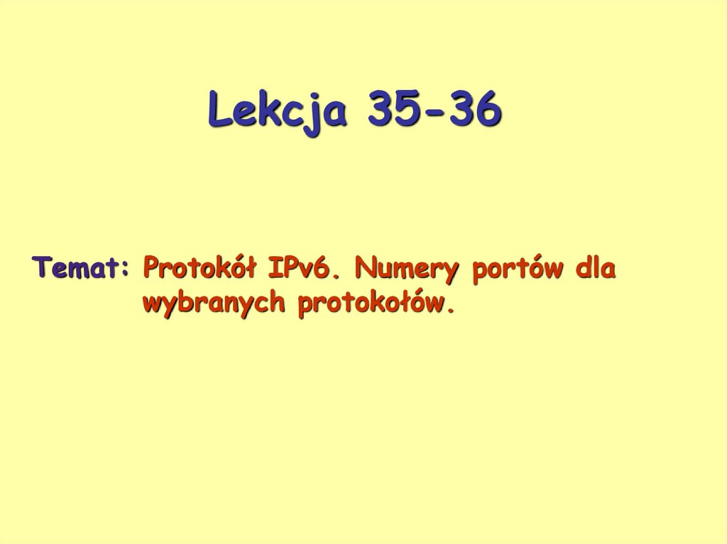 Lekcja 35-36Temat: Protokół IPv6. Numery portów dla
