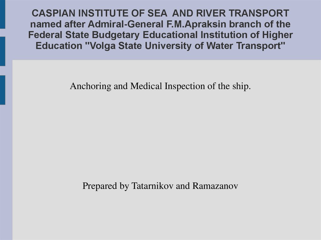 CASPIAN INSTITUTE OF SEA AND RIVER TRANSPORTnamed after Admiral-General F.M.Apraksin branch of the