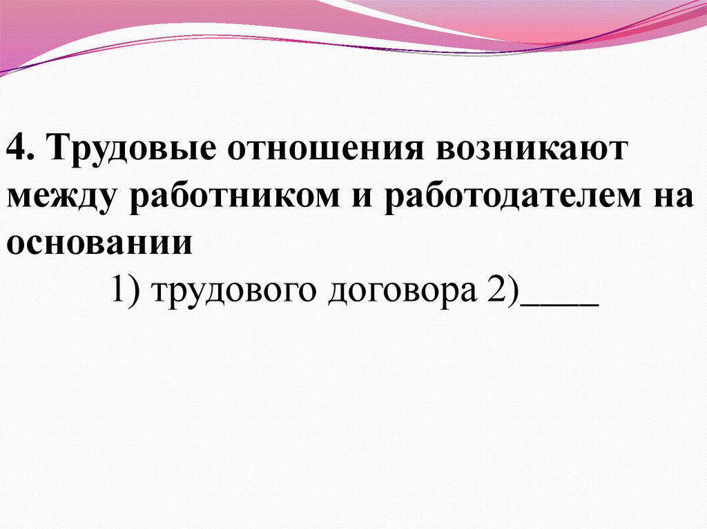 4. Трудовые отношения возникаютмежду работником и работодателем на
