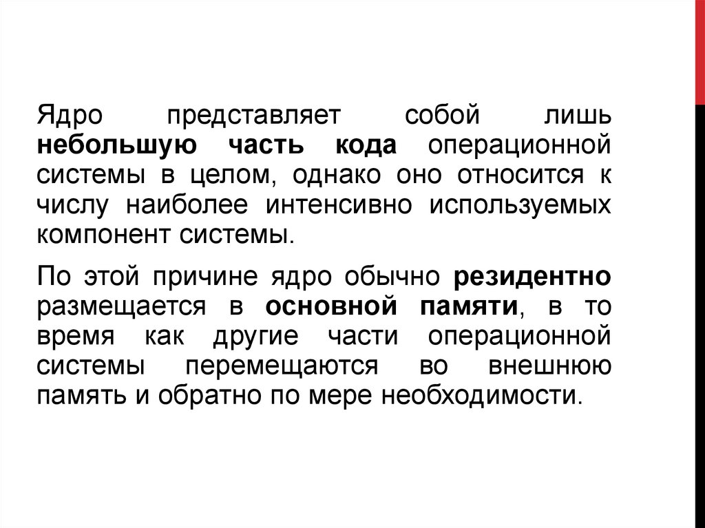 По этой причине ядро обычно резидентно