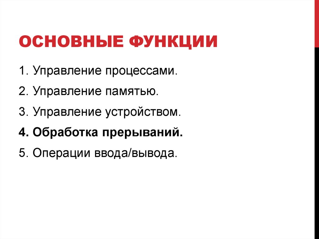 ОСНОВНЫЕ ФУНКЦИИ1. Управление процессами.