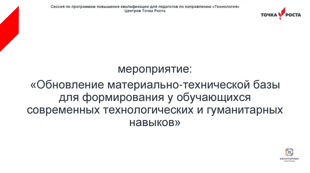 Сессия по программам повышения квалификации для педагогов по направлению «Технология»Центров Точка Роста