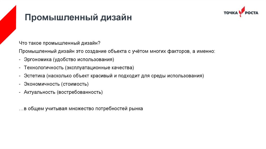 Промышленный дизайн это создание объекта с учётом многих факторов, а именно: