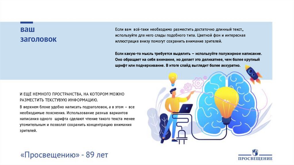 шрифт или подчеркивание. В итоге слайд выглядит более аккуратно.