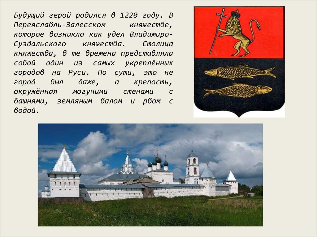 Будущий герой родился в 1220 году. ВПереяславль-Залесском
