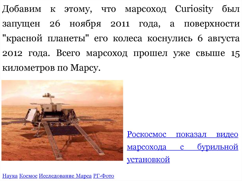 Добавим к этому, что марсоход Curiosity былзапущен 26 ноября 2011 года, а поверхности